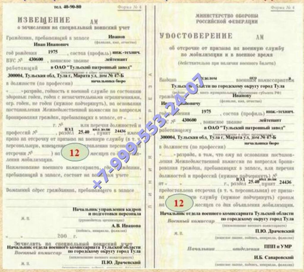 Наша компания предлагает купить в Себеже удостоверение об отсрочке на военную службу на максимально выгодных условиях для клиента. Документы легальные, использованы бланки государственного образца.